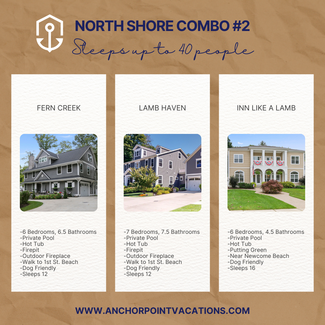 Trying to decide if you want to stay on the north side or south side of town? Refer to this article to learn more about the experiences on each end. If you are on a desktop computer, you can view our map and locations here. The Anchor Point team is here to help you curate the perfect combination of homes for your large group. Don't hesitate to reach out for guidance, there are many more combos available in addition to the above!