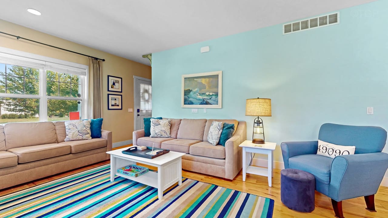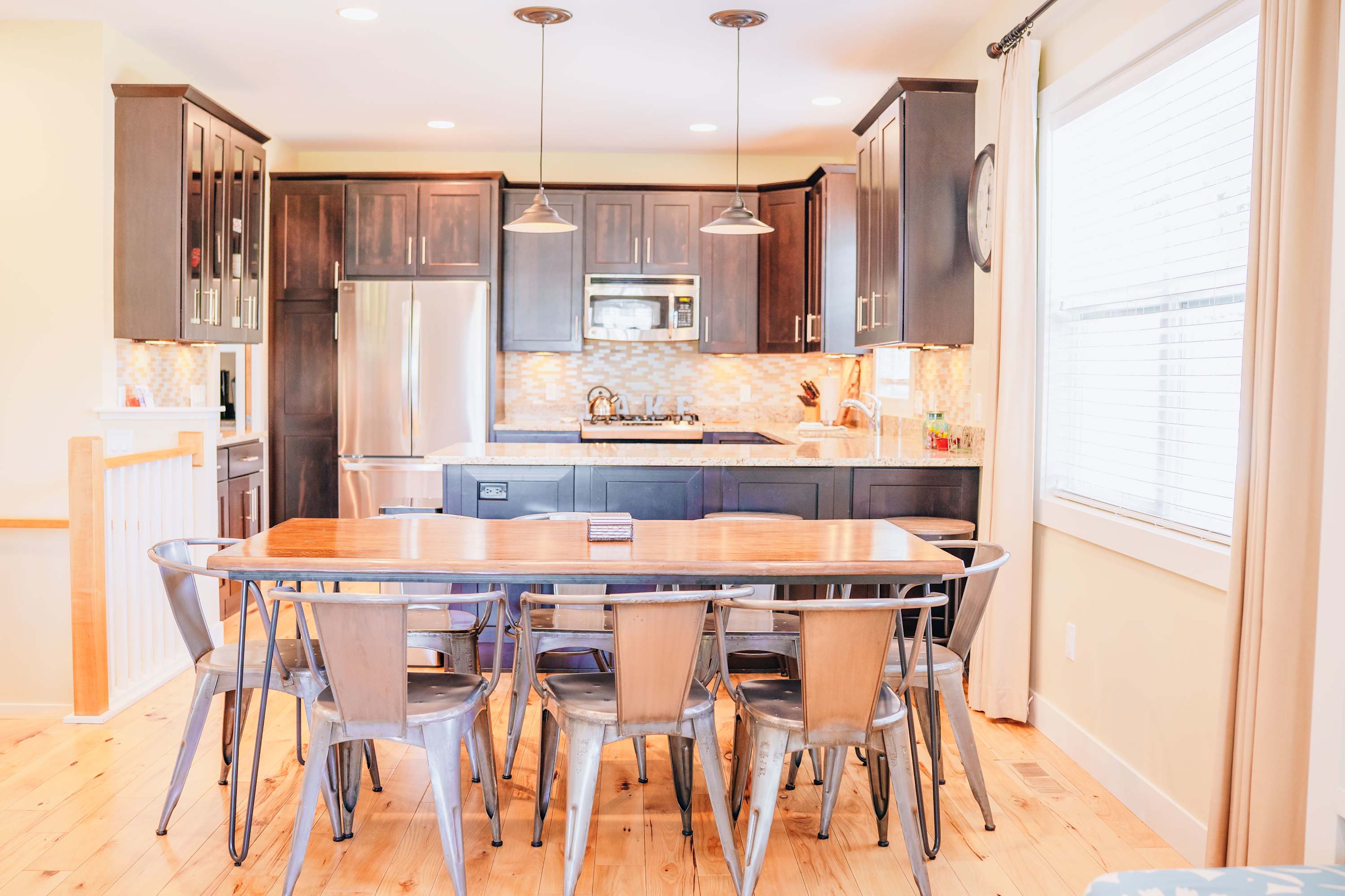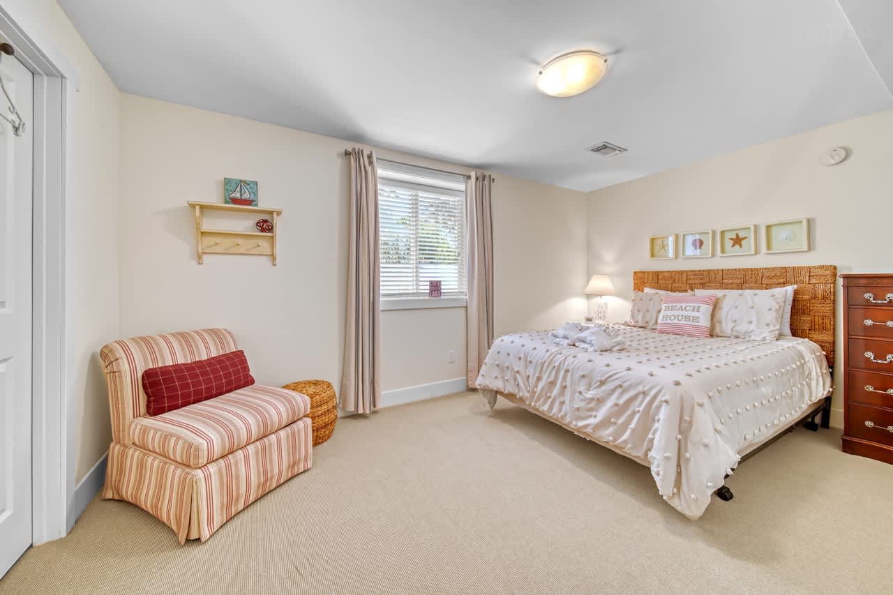 The finished lower level features a game room with shuffleboard, wet bar, and additional sleeping space, while the backyard invites gatherings around the fire pit, grilling, and yard games. Enjoy walkable access to Kids Corner Park and the Blue Stairs beach access at South Beach. Just a mile to downtown shops and dining!