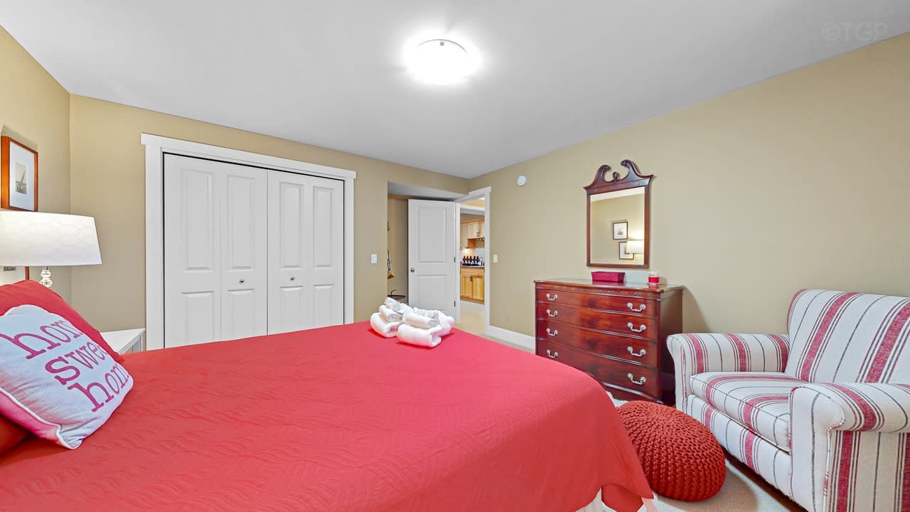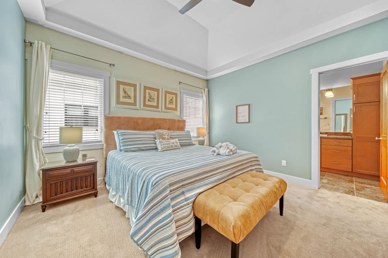 Bedroom 1: King bed with attached full bathroom (main floor)
