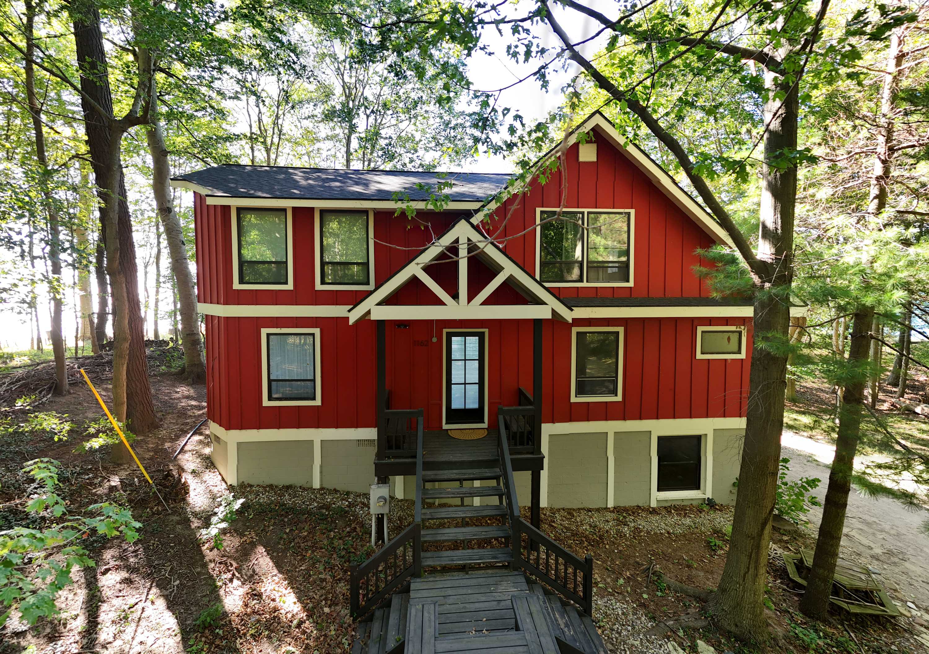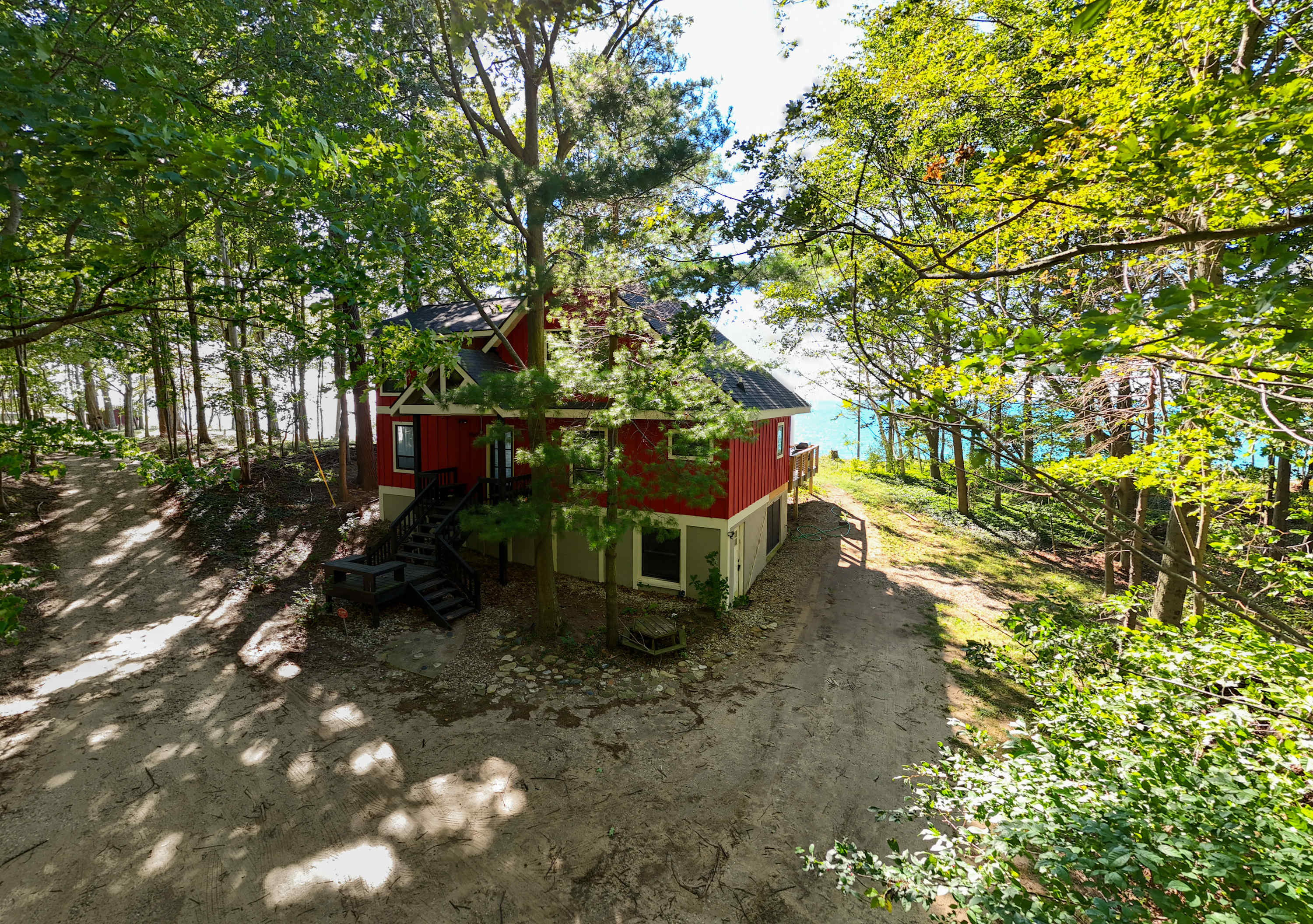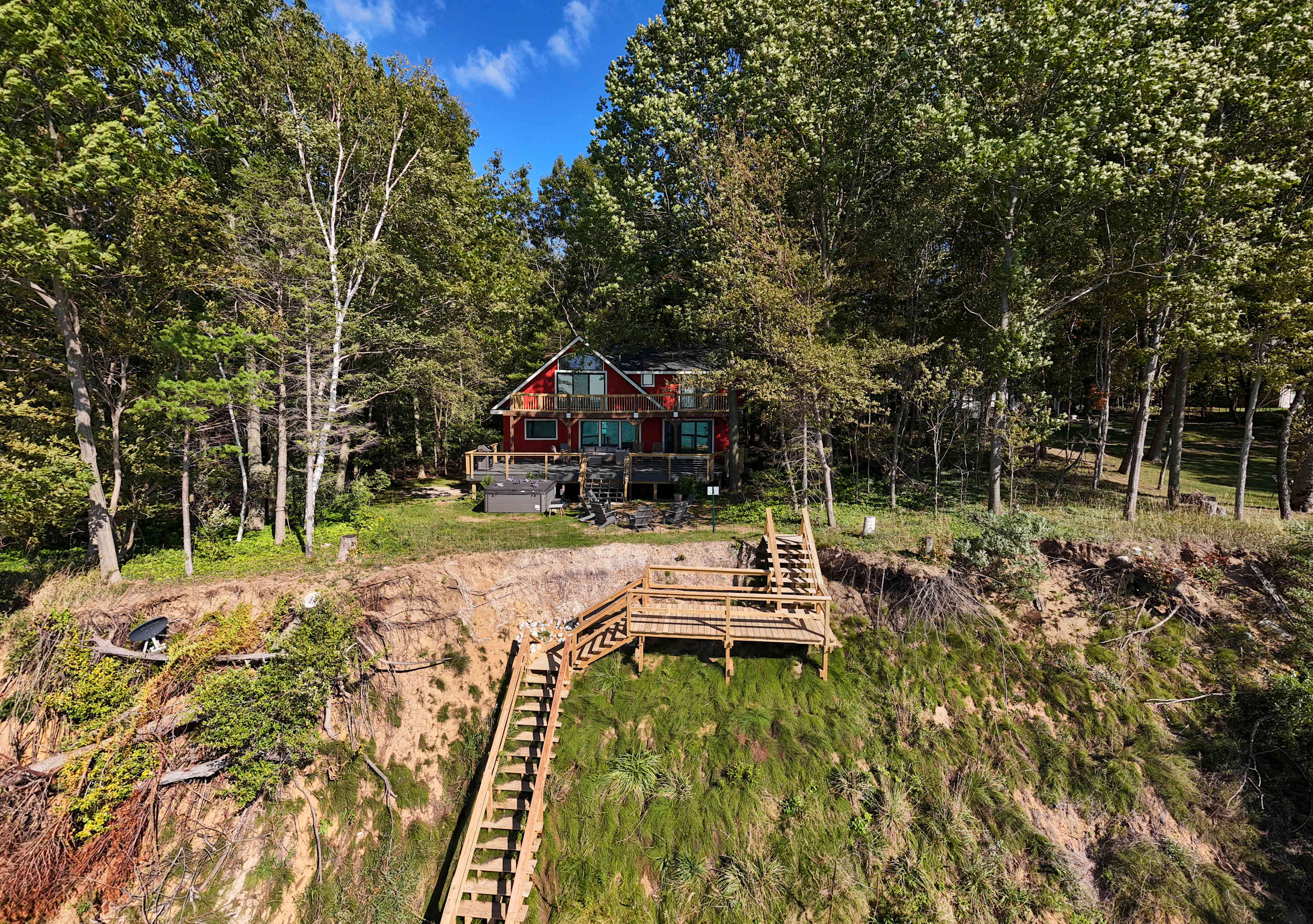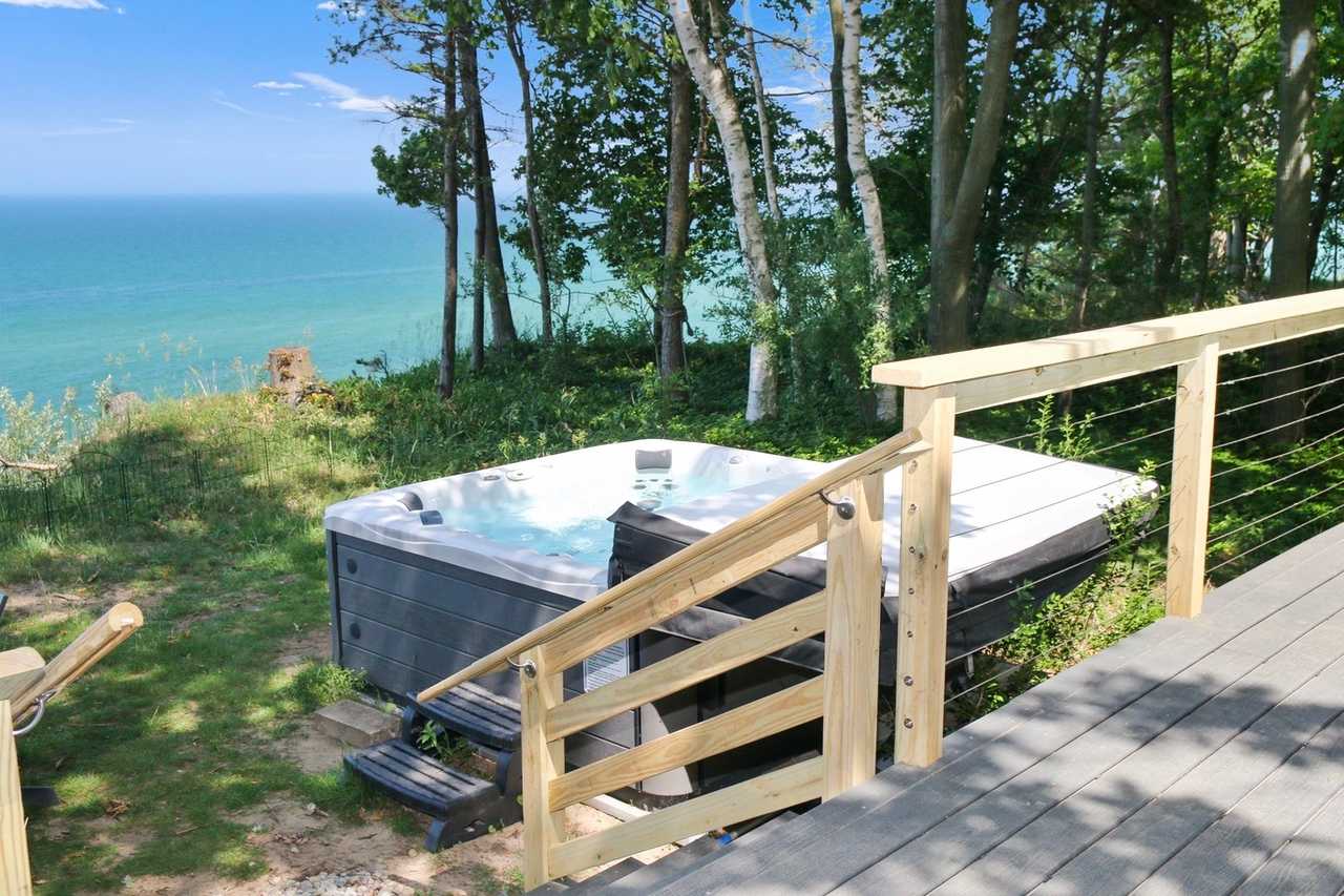 The location is absolutely perfect. A private beach, unobstructed views, and quiet wooded setting set this place apart. It is a physical challenge to the beach at 126 steps, 1 way. But the stairs are well made and kept. My 2 and 4 year old did these steps daily. We were fortunate to have perfect weather and enjoyed the hot tub daily.