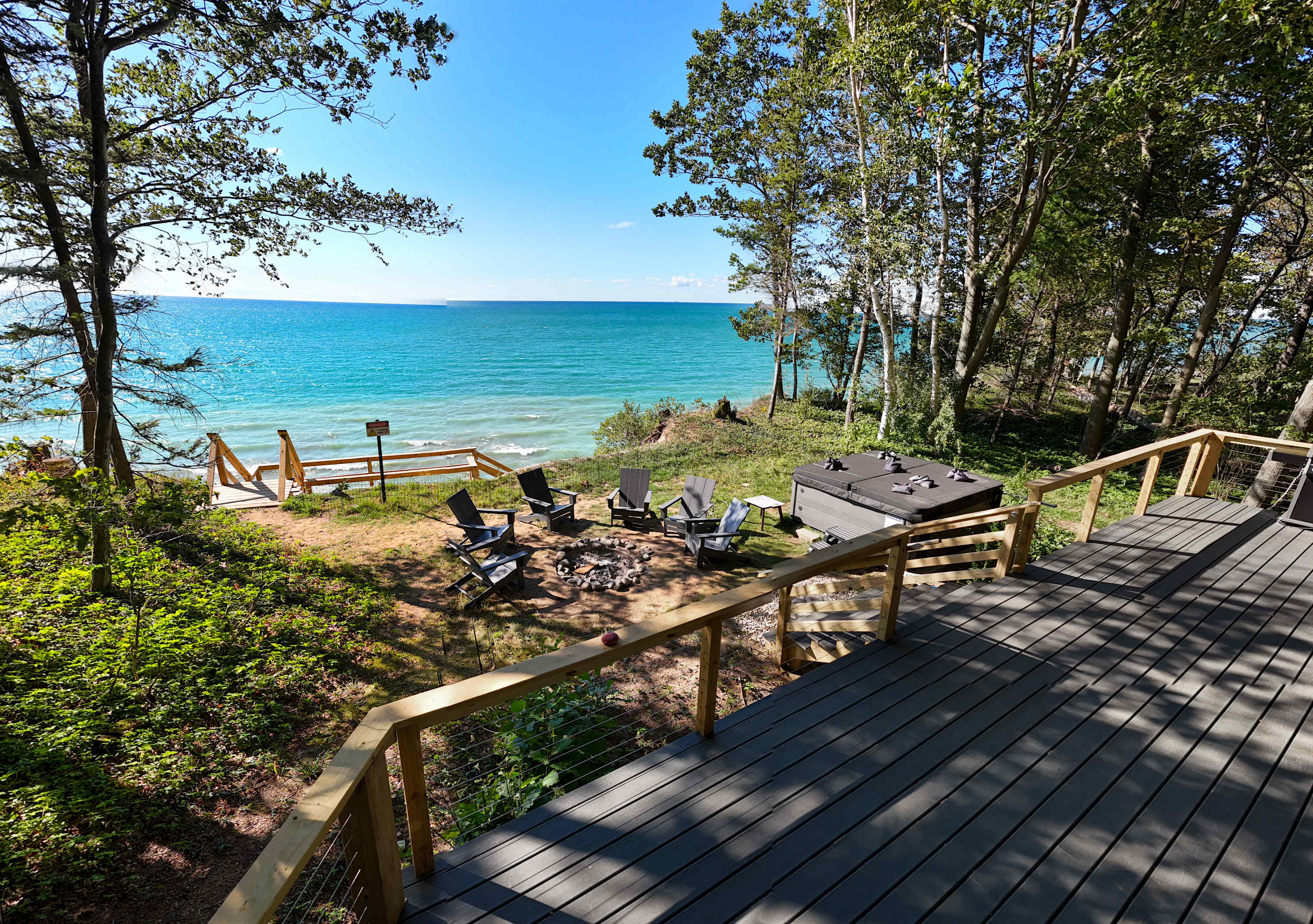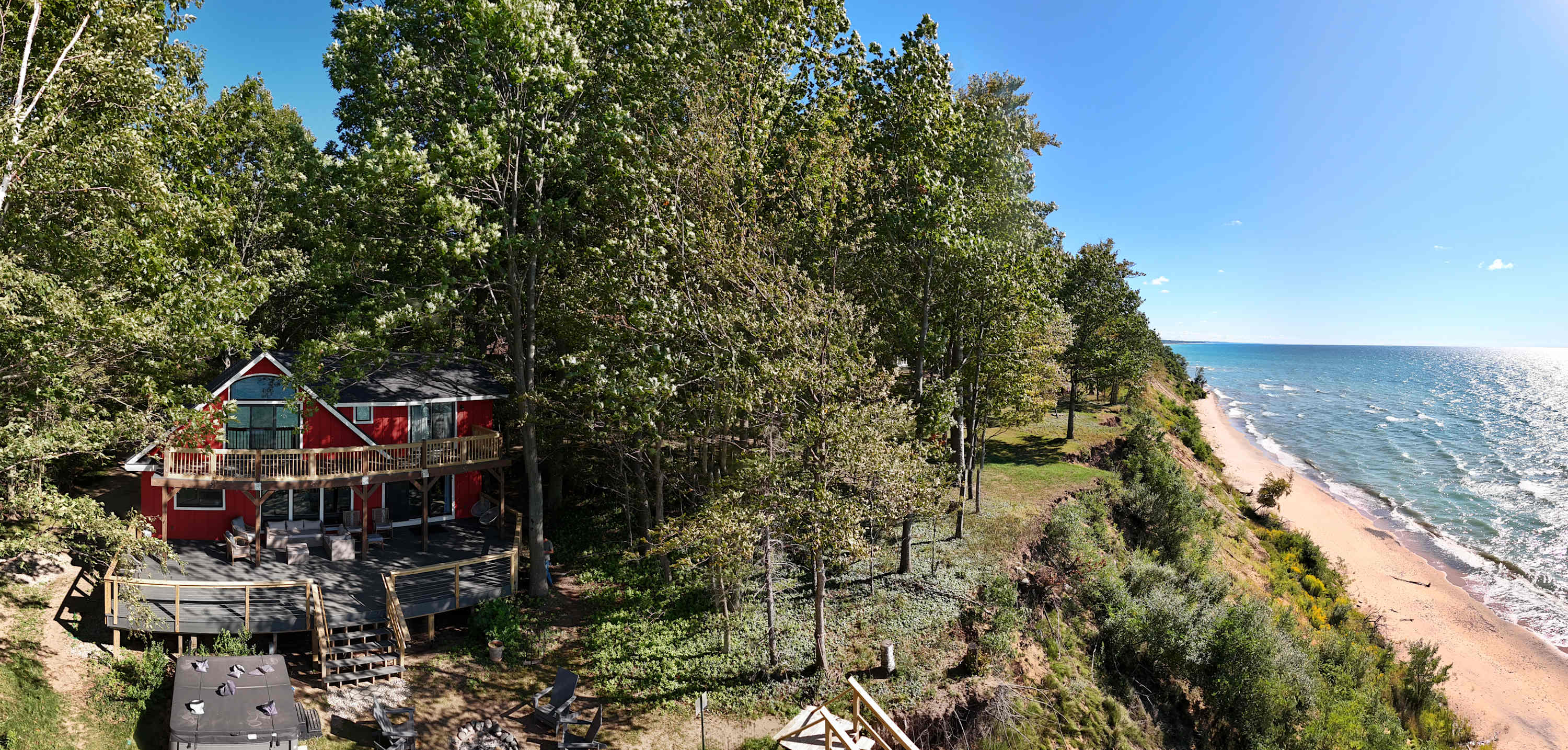 Wonderful stay. The backdrop of the home overlooking Lake Michigan brought soaring bald eagles, crashing waves and insane sunsets. We enjoyed the back deck and the firepit. The access to the beach directly from the home provides a unique opportunity in this area. The host was attentive and informative. Close to everything yet far enough away to enjoy the tranquility of the lake and surrounding nature