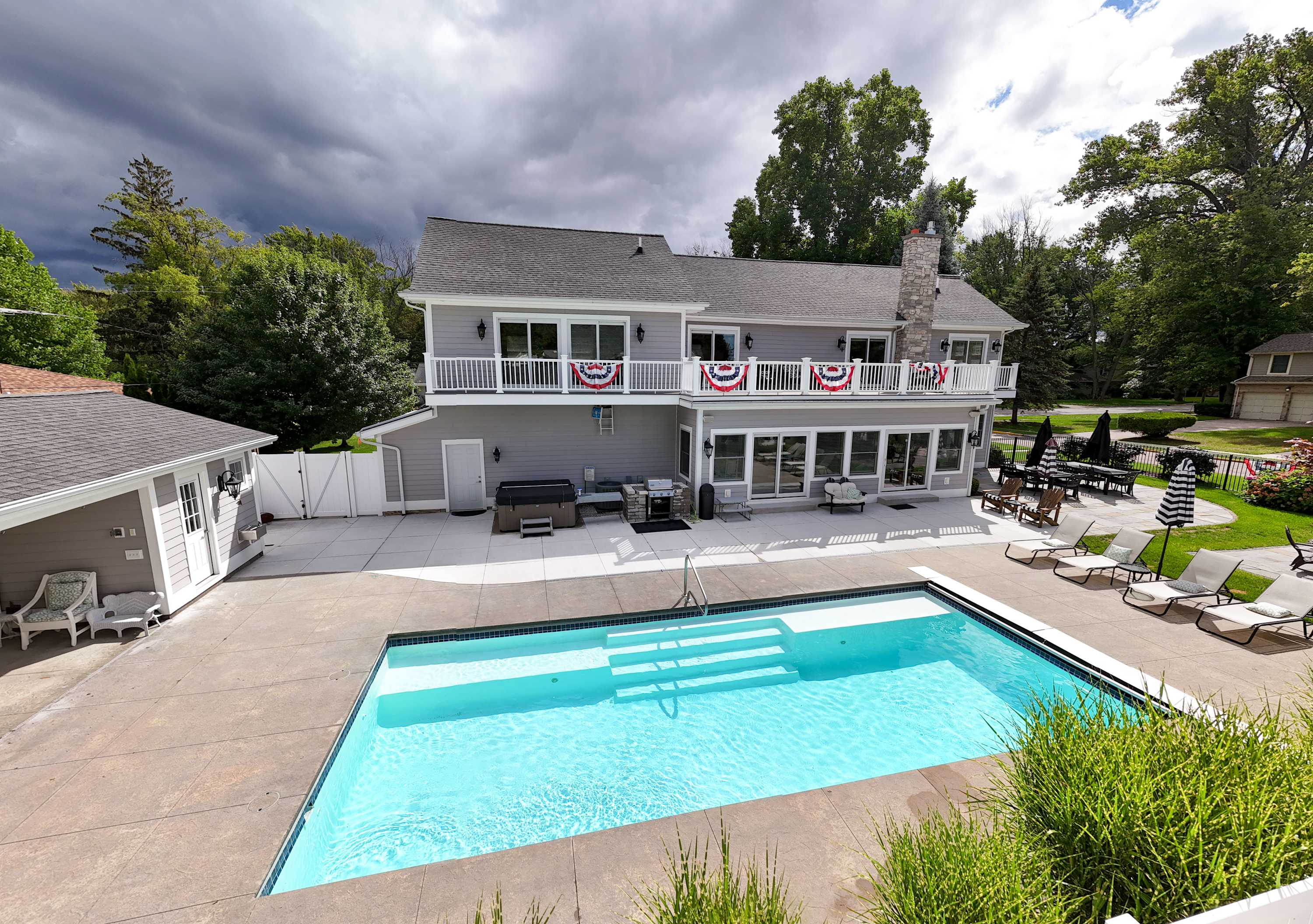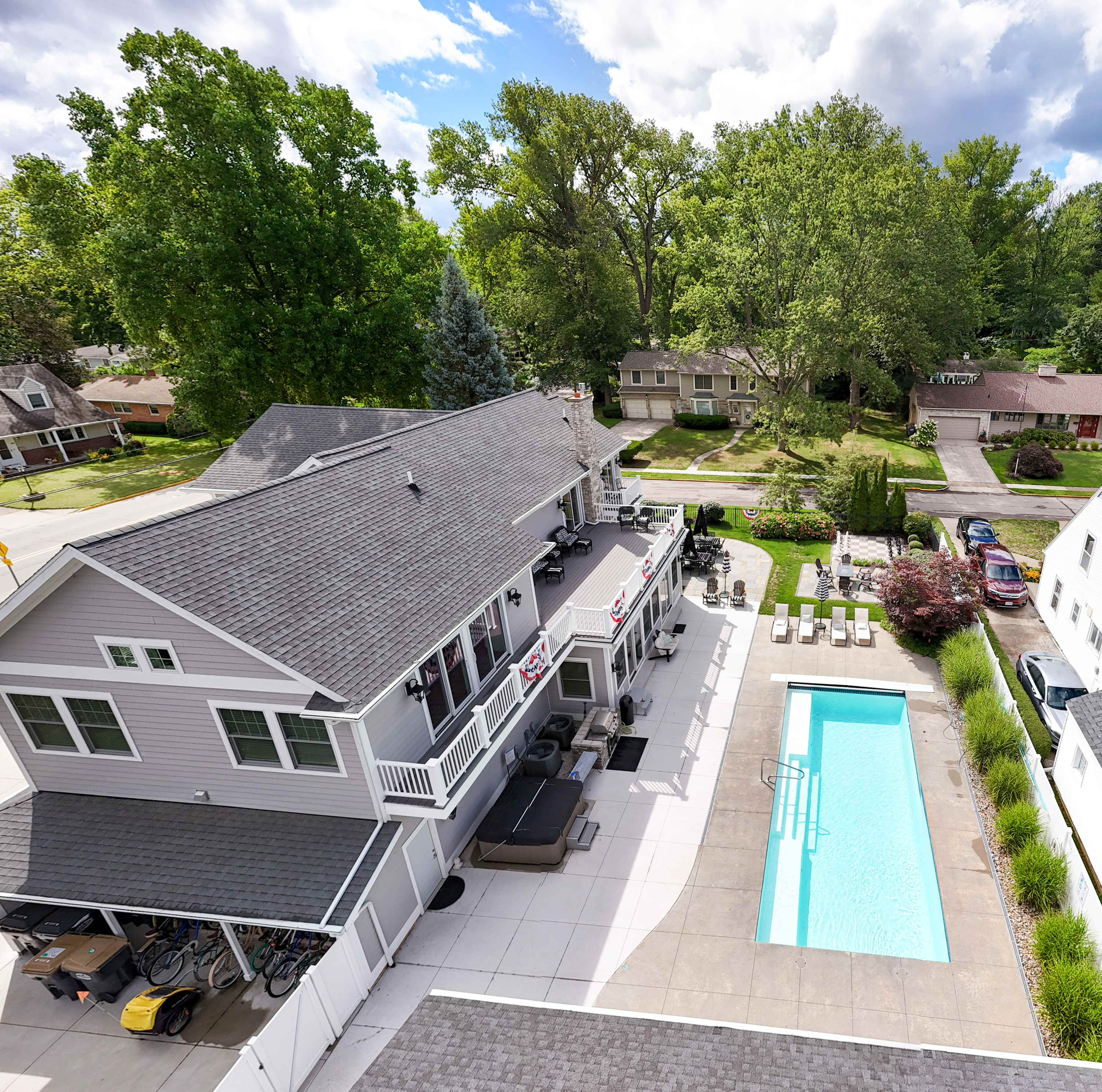 Welcome to Lamb Guest, where lakeside luxury is defined. Spanning three floors, the home offers multiple living spaces and game rooms for relaxation or entertainment. Gather around the grand dining table, which comfortably seats 12. With 2 bedrooms on the main floor and 5 upstairs, there's space for everyone. Step outside to a resort-style backyard featuring a private heated pool, pool house, and hot tub. 0.6 miles to South Beach Blue Stairs and Kids' Corner Park. 1.3 miles to downtown South Haven! Dog friendly!