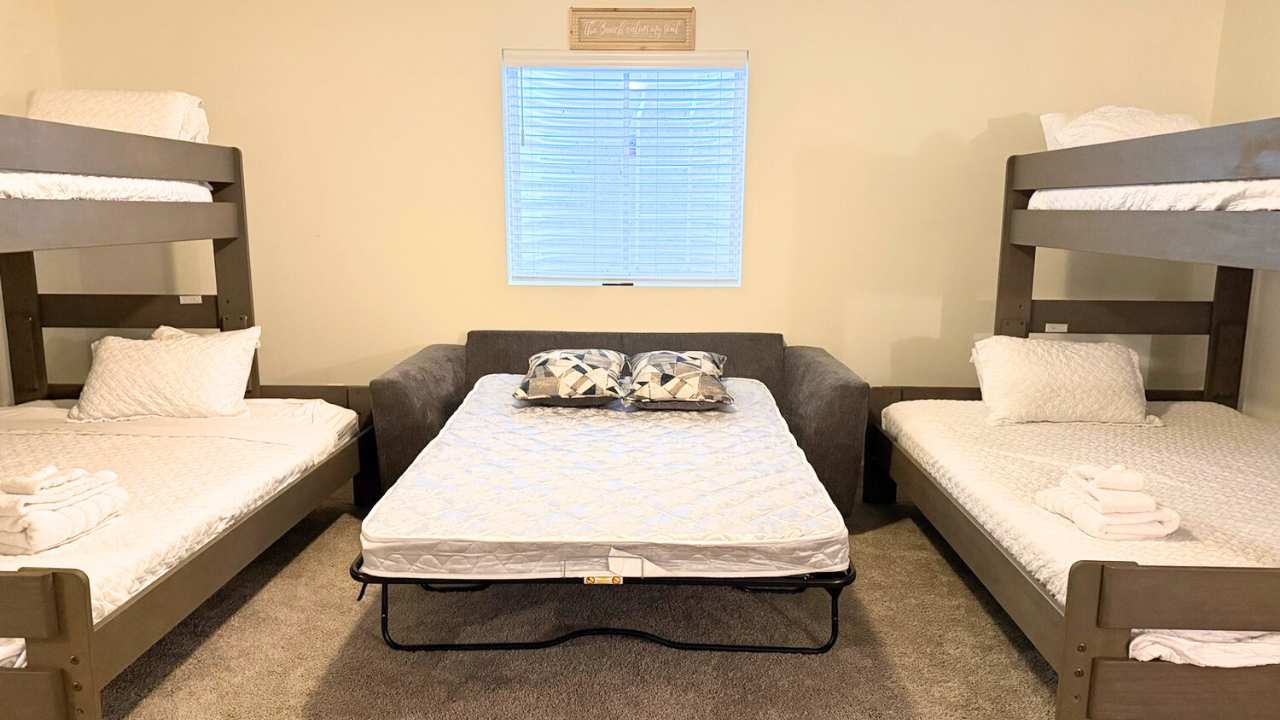 We had an incredible long weekend at this property! Two families stayed here very comfortably. Our 5 kids had an amazing time with their own bunk room in the basement while both sets of parents were able to enjoy the upstairs rooms with king sized beds. We even had one unused bedroom with 2 beds so the home could accommodate more people if needed. The pool is right outside this home and was so much fun and convenient when we were done at the beach. The communication with Anchor Point was exceptional and we can’t wait to return to this property in the future!
