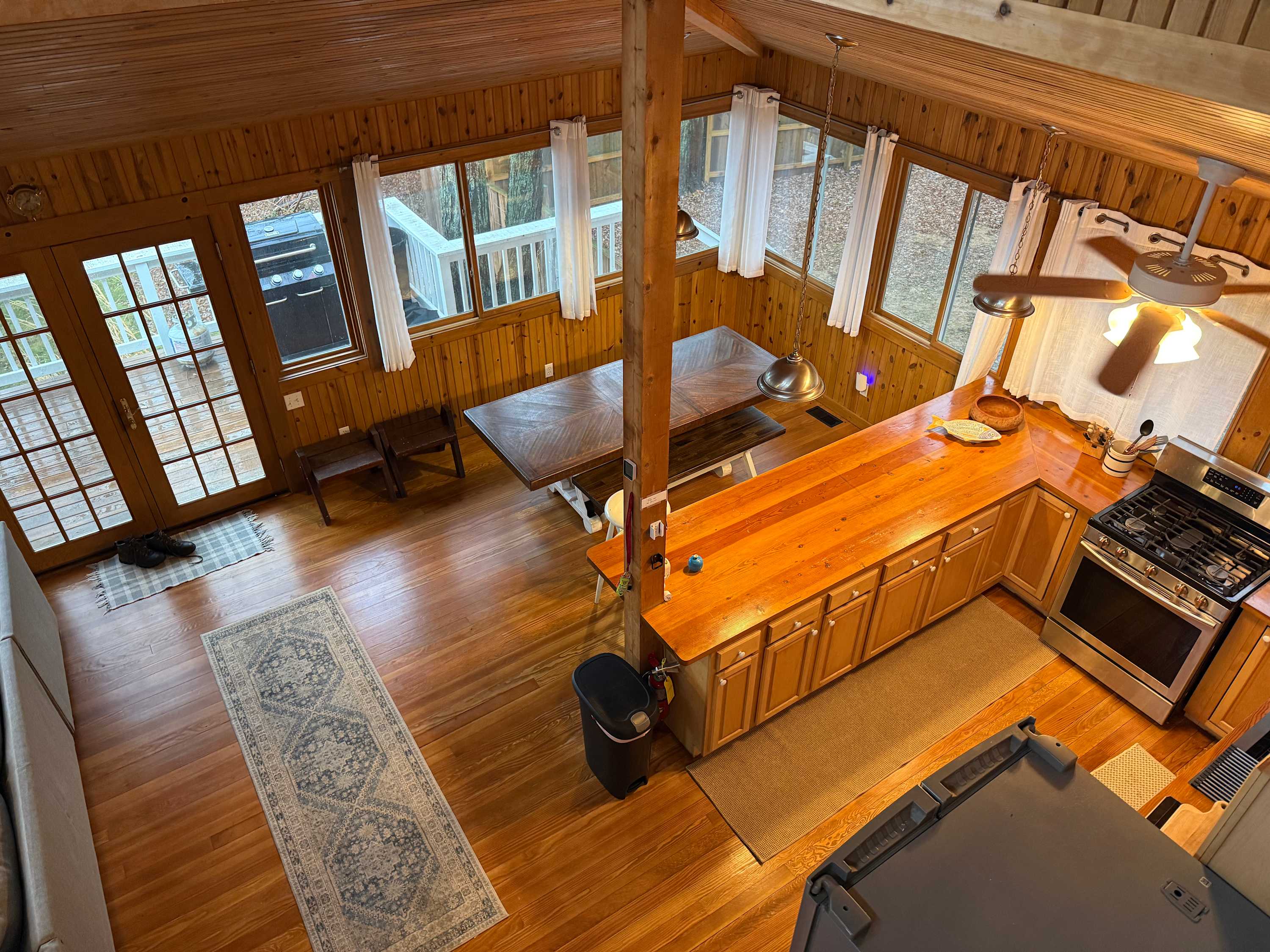 Inside, the open-concept layout features high ceilings, abundant natural light, and a cozy fireplace that anchors the living space. Thoughtful finishes blend contemporary comfort with classic cottage charm, creating a warm and welcoming atmosphere for gathering, relaxing, and making memories.