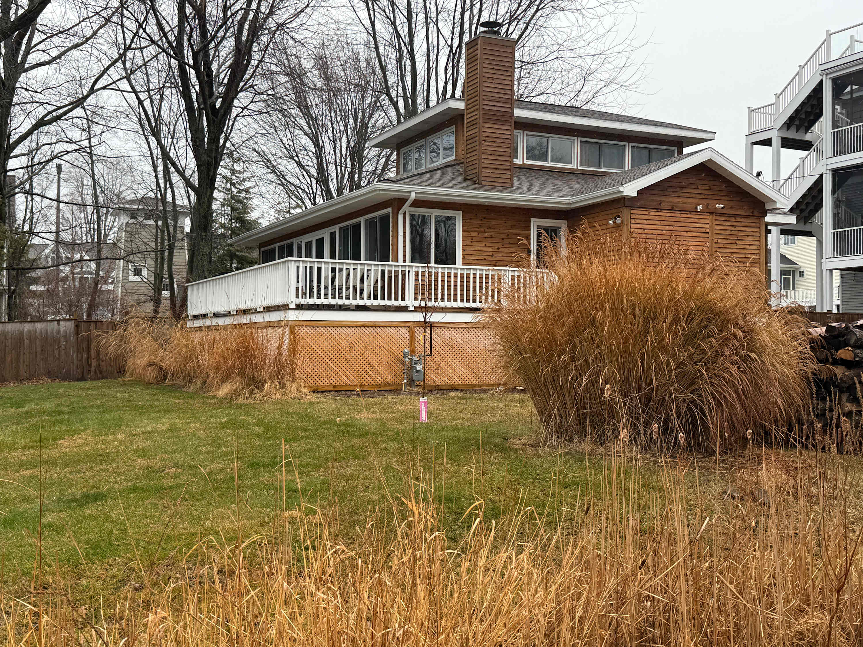 OUTDOOR LIVING: Deck, gas grill, firepit, fenced in backyard, tram down to the beach.