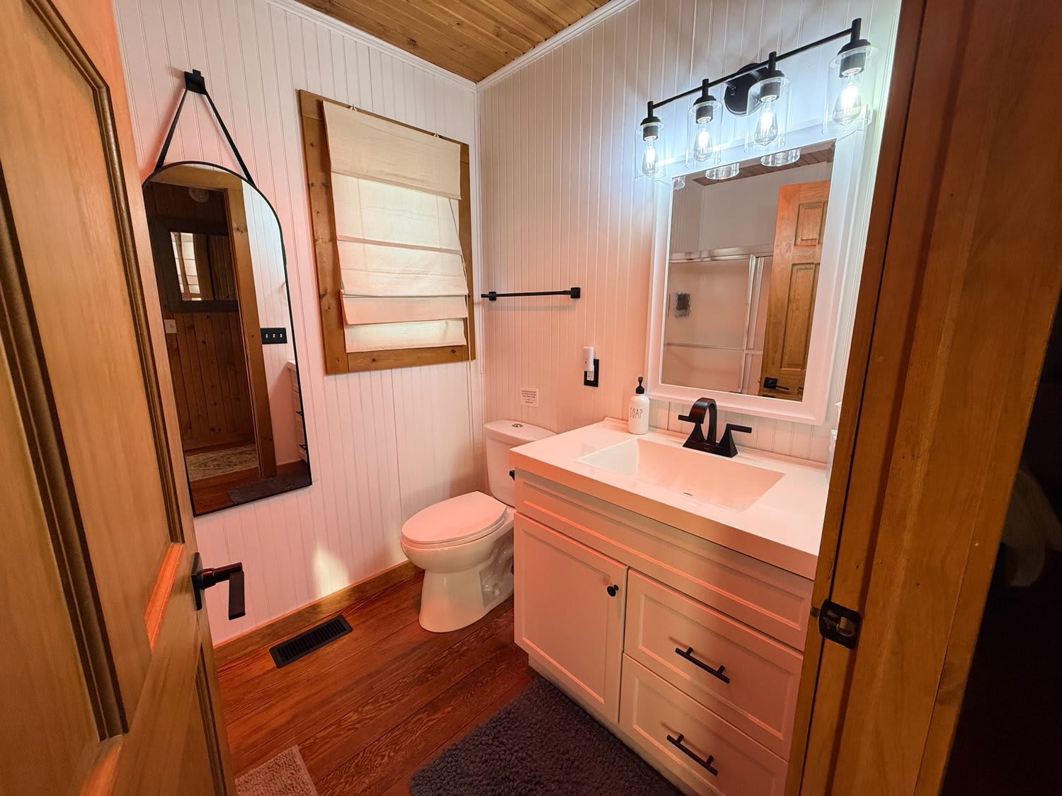 Bedroom 2: Queen Bed (Main Floor) with Adjacent Bathroom